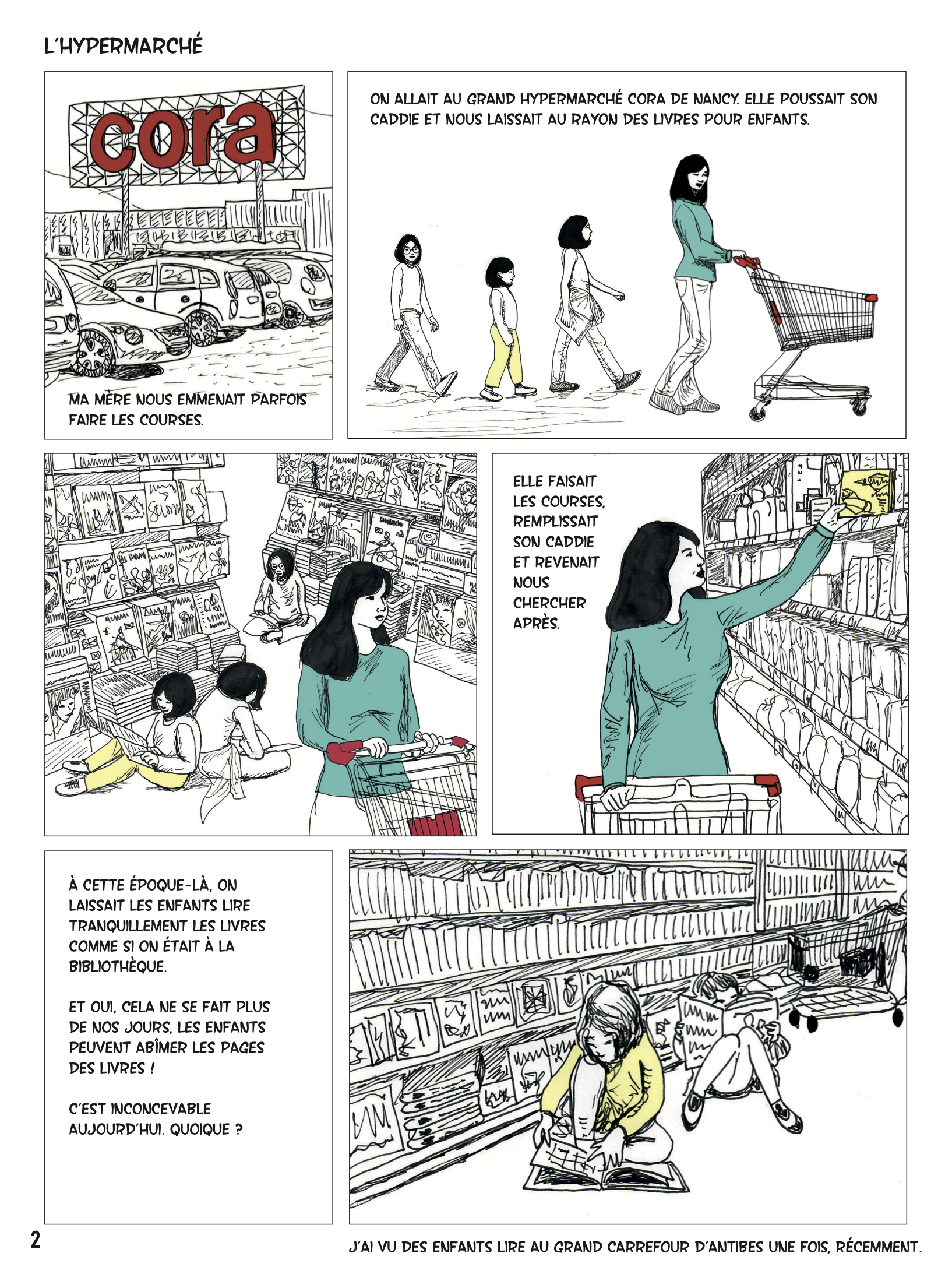 « Avec un dessin doux et évocateur, cette BD autobiographique explore les liens familiaux avec délicatesse. Certaines scènes font remonter des souvenirs perdus d’objets et de lieux (80’s/ 90’s) .