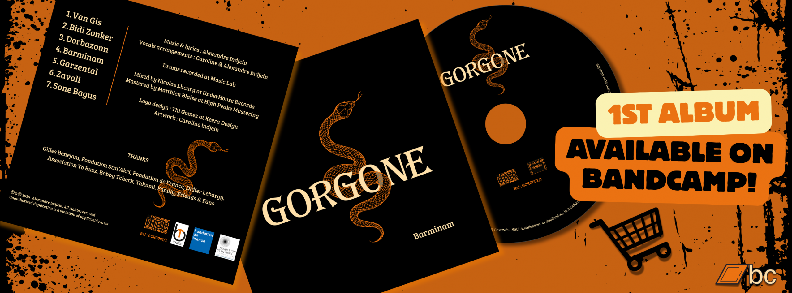 Logo design pour Gorgone, groupe de rock progressif : Caroline Indjein en 2024. Premier album : Barminam. https://gorgone.bandcamp.com/album/barminam-2