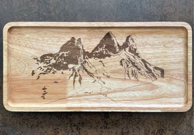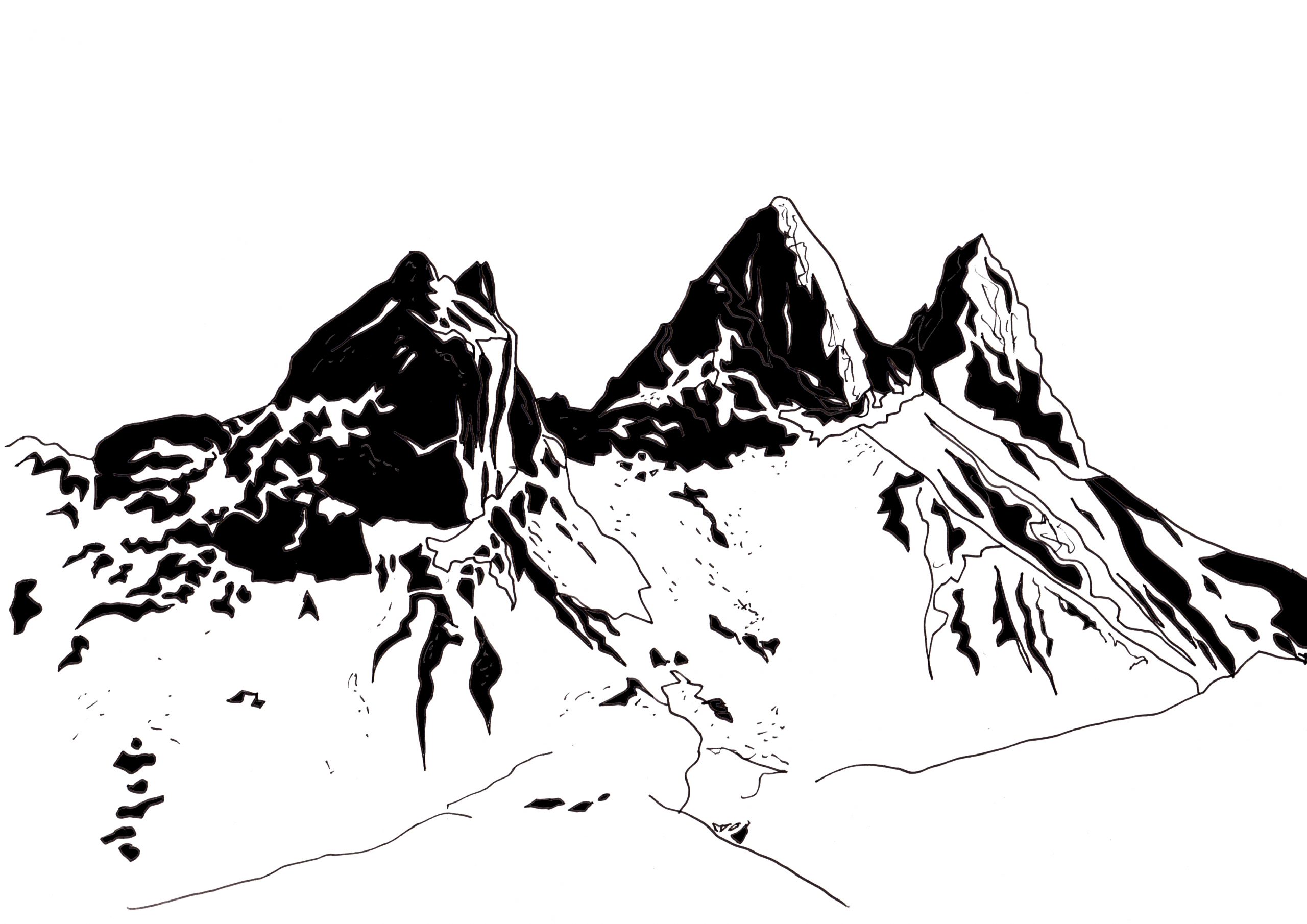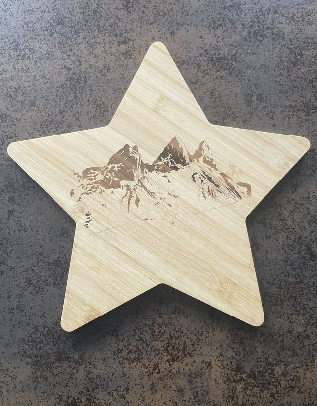 Illustration de montagnes (Aiguilles d’Arves) pour Alnath Design en 2024. Utilisation : gravage sur bois.